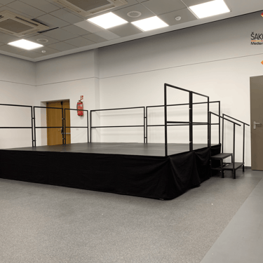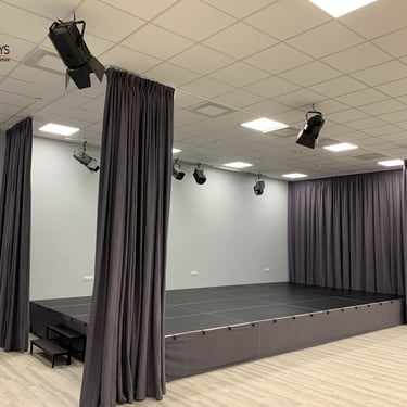 Scenų podestų bei akustinių užuolaidų montavimas.